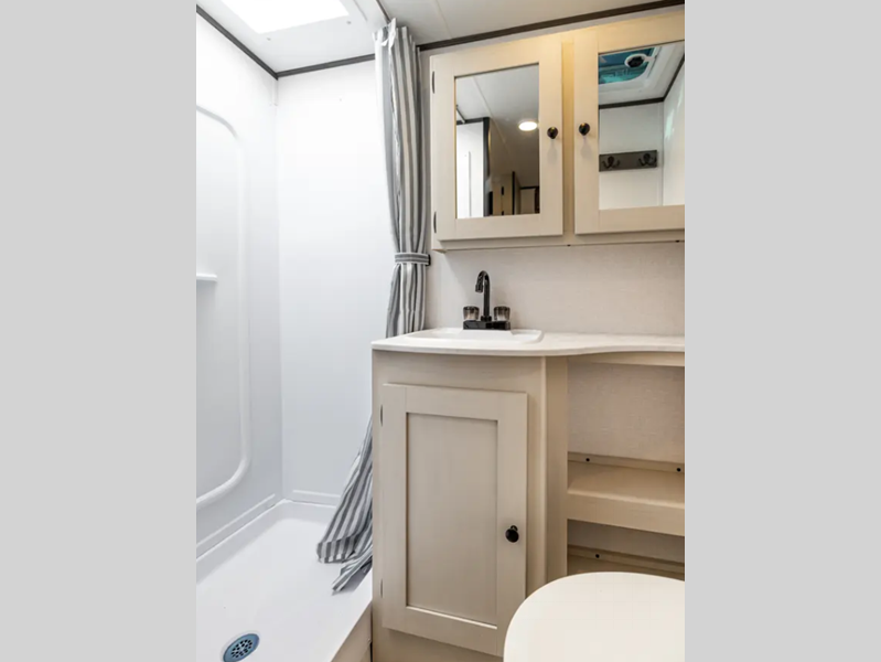 Sleeps 5 Slides 1 Length 22 ft 11 in Ext Width 7 ft Ext Height 9 ft 11 in Hitch Weight 393 lbs GVWR 4793 lbs Dry Weight 3617 lbs Cargo Capacity 1176 lbs Fresh Water Capacity 50 gals Grey Water Capacity 35 gals Black Water Capacity 35 gals Furnace BTU 19000 btu Number Of Bunks 2 Available Beds Full Refrigerator Type Double Door Cooktop Burners 2 Number of Awnings 1 LP Tank Capacity 10 lb. Water Heater Type Tankless On Demand Awning Info 15' Power w/LED Light Axle Count 1 Number of LP Tanks 1 Shower Type Standard Similar Floorplans