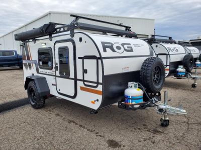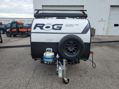 You will be so excited to test out this ROG travel trailer for yourself! The interior has great storage solutions to keep your camp gear secure. The rear outdoor kitchen has convenient amenities to help you eat well while you're away. You'll find a two-burner stove with cast-iron grates and a 3.3 cu. ft. 12V refrigerator to cook and store food. And the queen/futon mattress is sure to bring a great night's rest!