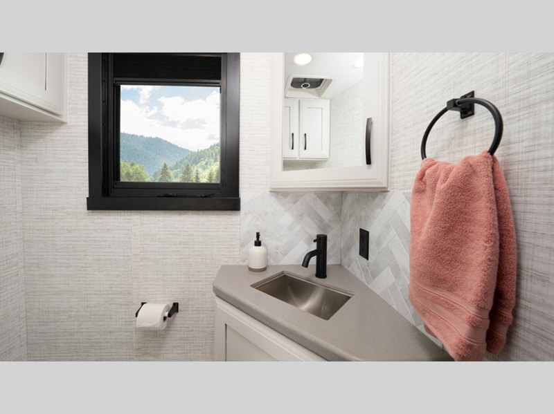 Sleeps 7 Slides 2 Length 39 ft 4 in Ext Width 8 ft 5 in Ext Height 13 ft 4 in Int Height 7 ft Interior Color Brookside, Modern Farmhouse Exterior Color Fieldstone, Riverbank, Silverleaf, Sundial, Midnight Full-Body Paint Choices Hitch Weight 12000 lbs GVWR 31000 lbs Fresh Water Capacity 72 gals Grey Water Capacity 91 gals Black Water Capacity 63 gals Tire Size 275/80R 22.5 Furnace BTU 30000 btu Generator 8,000W Diesel Fuel Type Diesel Engine Cummins ISB 6.7L Chassis Freightliner S2RV Horsepower 360 hp Fuel Capacity 100 gals Wheelbase 279 in Number Of Bunks 1 Available Beds King Torque 800 ft-lb Refrigerator Type Residential Convection Cooking Yes Cooktop Burners 2 Shower Size 30" x 36" Number of Awnings 1 Axle Weight Front 10000 lbs Axle Weight Rear 21000 lbs LP Tank Capacity 24.5 gals Water Heater Capacity 10 gal Water Heater Type Gas/Electric AC BTU 30000 btu TV Info LR 39" LED HD Smart TV, BR LED HD Smart TV, Ext. LED HD Smart TV Awning Info 17' Electric w/ LED Lights Washer/Dryer Available Yes Gross Combined Weight 43000 lbs Shower Type Standard Electrical Service 50 amp Similar Floorplans