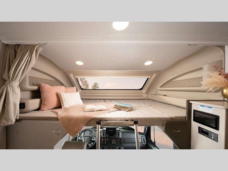 - Custom-molded ABS surround in cab-over area with overhead bunk (750 lb. capacity) and safety net (300 lb. capacity); Collapsible bunk ladder