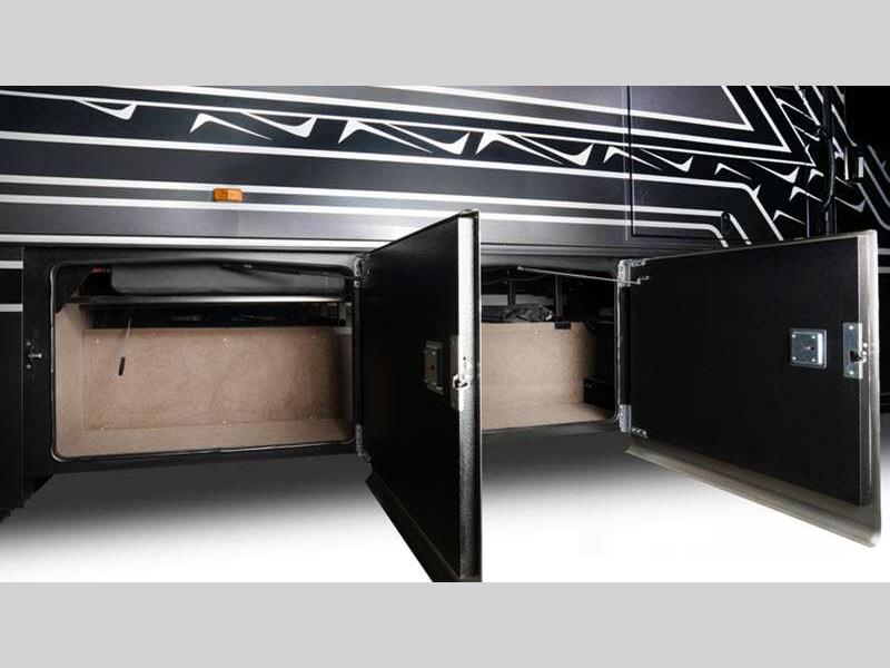 - Carpeted, full pass-through storage compartments with lockable slam latch doors