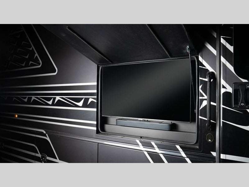 Each unit is held together with a Freightliner S2RV chassis, a one-piece, crowned fiberglass roof, and TuffShell vacuum-bond laminated sidewalls, plus they are powered by a Cummins ISB 6.7L engine. The exteriors are full of conveniences like a shower, utility center, an entertainment center, and a carpeted, full pass-through storage compartment with lockable slam latch doors to keep your outdoor gear! The interior will feel just like home with raised panel hardwood cabinetry and porcelain tile flooring, and the Firefly Multiplex system will let you control all your coach's function with ease.