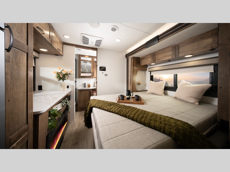 • Queen-size bed with bedspread and nightstands, bunks with industry-exclusive 300 Ib. capacity each, wall-mounted tablet holder in each bunk (33F)