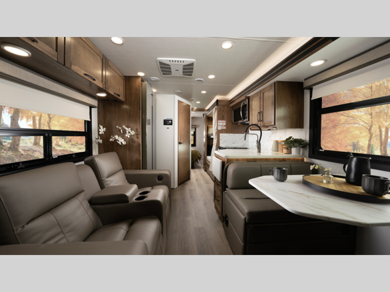 • Entegra-exclusive, easy-operation legless dinette table (32U, 33F); U-shaped dinette (30M); Car seat tethers (select floorplans)