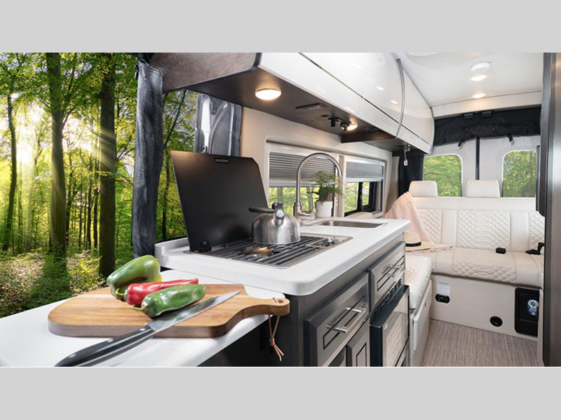Sleeps 2 Length 22 ft Ext Width 7 ft 2 in Ext Height 10 ft Int Height 6 ft 6 in Interior Color Crown Point GVWR 11000 lbs Fresh Water Capacity 28 gals Grey Water Capacity 26 gals Black Water Capacity 16 gals Tire Size 205/75R16C Furnace BTU 20000 btu Generator 2800W Fuel Type Gasoline Engine 3.5L EcoBoost V6 Chassis Ford Transit AWD 350HD Horsepower 310 hp Fuel Capacity 25 gals Wheelbase 148 in Torque 400 ft-lb Refrigerator Size 3.1 cu ft Cooktop Burners 1 Shower Size 25" x 47" Number of Awnings 1 Axle Weight Front 4360 lbs Axle Weight Rear 7700 lbs LP Tank Capacity 20 lbs. Water Heater Type Truma Combi Eco Plus AC BTU 13500 btu TV Info LR 24" TV Awning Info Carefree® armless motion sensing patio with LED light strip Gross Combined Weight 13000 lbs Shower Type Wet/Bath Shower Electrical Service 30 amp Solar Wattage 200 watts Similar Floorplans
