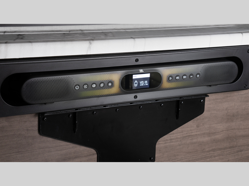 - E-Z Drive™; Exterior entertainment center with outside speakers and LED HD Smart TV mounted on swivel bracket; Electric patio awning with LED lights; Slideout cover awnings; 1,000W inverter; Sony® infotainment center with Apple CarPlay® and Android Auto™; Backup and side-view cameras; Removable driver/passenger cockpit table; LED HD Smart TV in living area; Blackout night roller shades