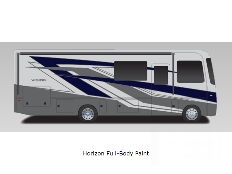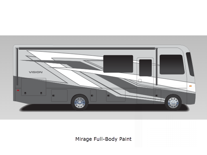 Sleeps 5 Slides 1 Length 31 ft 4 in Ext Width 8 ft 5 in Ext Height 12 ft 5 in Int Height 7 ft Interior Color Ashbrook, Modern Farmhouse Exterior Color Standard Graphics. Full-Body Paint; Mirage, Echo, Horizon Hitch Weight 5000 lbs GVWR 18000 lbs Fresh Water Capacity 72 gals Grey Water Capacity 40 gals Black Water Capacity 50 gals Tire Size 245/70R19.5 Furnace BTU 30000 btu Generator 5,500W Fuel Type Gasoline Engine 7.3L V8 Chassis Ford F53 Horsepower 335 hp Fuel Capacity 80 gals Wheelbase 190 in Available Beds RV Queen Torque 468 ft-lb Refrigerator Type 12V Refrigerator Size 10 cu ft Cooktop Burners 3 Shower Size 30" x 36" Number of Awnings 1 Axle Weight Front 7000 lbs Axle Weight Rear 12000 lbs LP Tank Capacity 16.5 gals Water Heater Capacity 6 gal Water Heater Type Gas/Electric DSI AC BTU 28500 btu TV Info LR 39" LED HD Smart TV, Exterior LED HD Smart TV Awning Info 23' Electric with LED Lights Gross Combined Weight 23000 lbs Shower Type Standard Electrical Service 50 amp Similar Floorplans