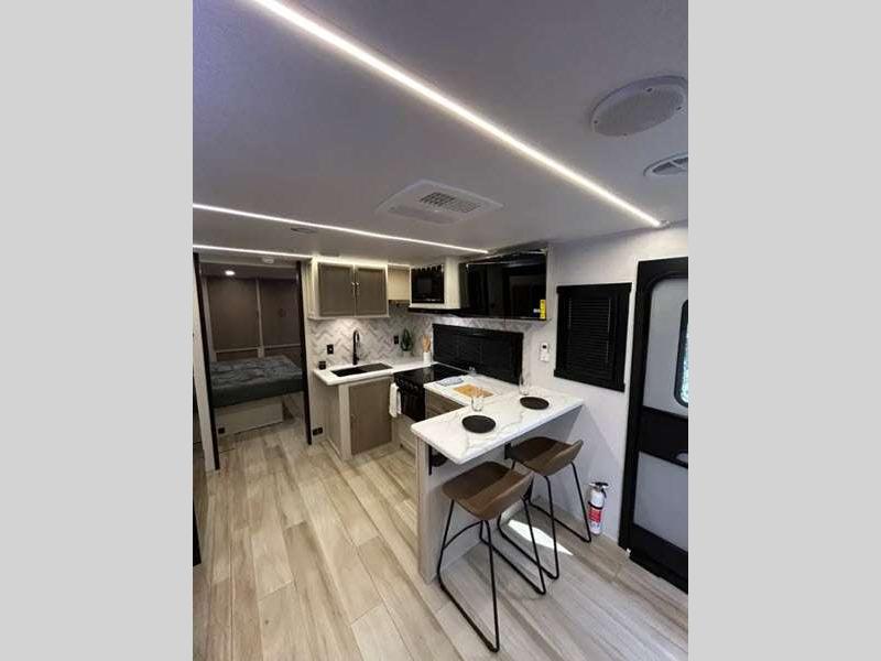 Sleeps 2 Slides 2 Length 31 ft 8 in Ext Width 8 ft Ext Height 11 ft 6 in Hitch Weight 1020 lbs Dry Weight 7563 lbs Cargo Capacity 2257 lbs Fresh Water Capacity 45 gals Grey Water Capacity 60 gals Black Water Capacity 30 gals Available Beds Custom King Refrigerator Type 12V Refrigerator Size 10 cu ft Cooktop Burners 3 Number of Awnings 1 Water Heater Type On Demand Tankless AC BTU 18000 btu TV Info 40" LED Smart TV Awning Info 22' with LED Lights Axle Count 2 Washer/Dryer Available Yes Shower Type Walk-In Shower Electrical Service 50 amp Similar Floorplans