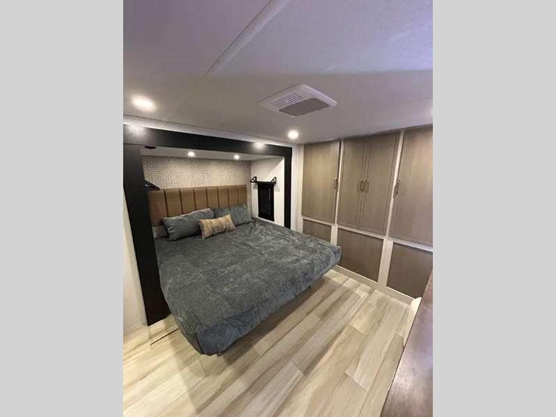 Sleeps 3 Slides 2 Length 33 ft 1 in Ext Width 8 ft Ext Height 11 ft Hitch Weight 1160 lbs Dry Weight 8243 lbs Cargo Capacity 1717 lbs Fresh Water Capacity 49 gals Grey Water Capacity 90 gals Black Water Capacity 30 gals Available Beds Custom King Refrigerator Type 12V Refrigerator Size 10 cu ft Cooktop Burners 3 Number of Awnings 1 Water Heater Type On Demand Tankless AC BTU 31500 btu TV Info LR 50" LED Smart TV Awning Info 19' with LED Lights Axle Count 2 Washer/Dryer Available Yes Shower Type Radius Electrical Service 50 amp Similar Floorplans