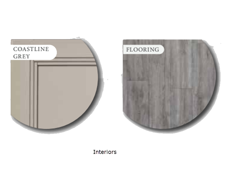 - Coastline Grey Flat Panel Cabinet Doors with Black Hardware & Faucets