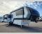 This Model Z luxury fifth wheel is bright and modern on the inside, with loads of amenities that will have you dreaming of your next trip! Enter and find a spacious combined living/kitchen space thanks to dual opposing slides. There is ample seating with a sliding desk/dining table, 62" theater seating, and a 72" tri-fold sofa along the rear wall. You can easily relax and enjoy the 50" Smart telescoping TV with a cozy fireplace below. The kitchen offers all that you need to prepare and cook meals just like home with a 16 cu. ft. refrigerator for your perishables, a 30" microwave oven, and three burner range top and oven. You will love the integrated spice rack, and the kitchen island all outfitted with dog bowls and double pull out trash bins with an integrated Stow 'N Go paper towel holder. There is also an 84" pantry with adjustable shelves for all of your canned and dry goods. Head up the steps to a private master suite with king bed slide. You can opt for the queen bed if you like. A sliding dresser top features hidden storage which is perfect for jewelry and other personal belongings. The front wardrobe features mirrored doors and the corner closet has been prepped for a stackable washer and dryer if you choose to add that option. Relax and enjoy a large bath featuring a linen cabinet, a 30" x 42" shower, and vanity with sink, plus medicine cabinet.