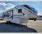 Comfort is just a step away in this fifth wheel with a large slide out. Here, you'll find the hidden pantry behind the pivoting entertainment door plus your kitchen appliances. The stainless steel sink will let you easily clean up, and the pivot dinette with two extra folding chairs provides versatile space to dine or work. Your crew can get comfortable on the L-shaped sofa after dinner, or head outdoors under the 18' power awning. A full bath lets you clean up after a day at the lake, and the front private bedroom with a king bed gives you your own space at night. There are also dual wardrobes and nightstands plus a wardrobe with washer and dryer prep for the option to go full-time!