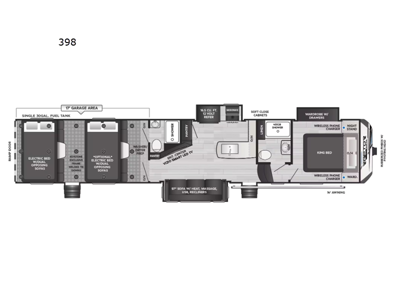 | Garage Size | 17 ft | LP Tank Capacity | 30 lbs |